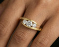 A symbol of timeless love and clarity, the Golden Gaze Three-Stone Ring is a breathtaking representation of past, present, and future. Crafted in 18K yellow gold, the design gracefully wraps around the diamonds, forming an eye-like silhouette that enhances their brilliance and significance.